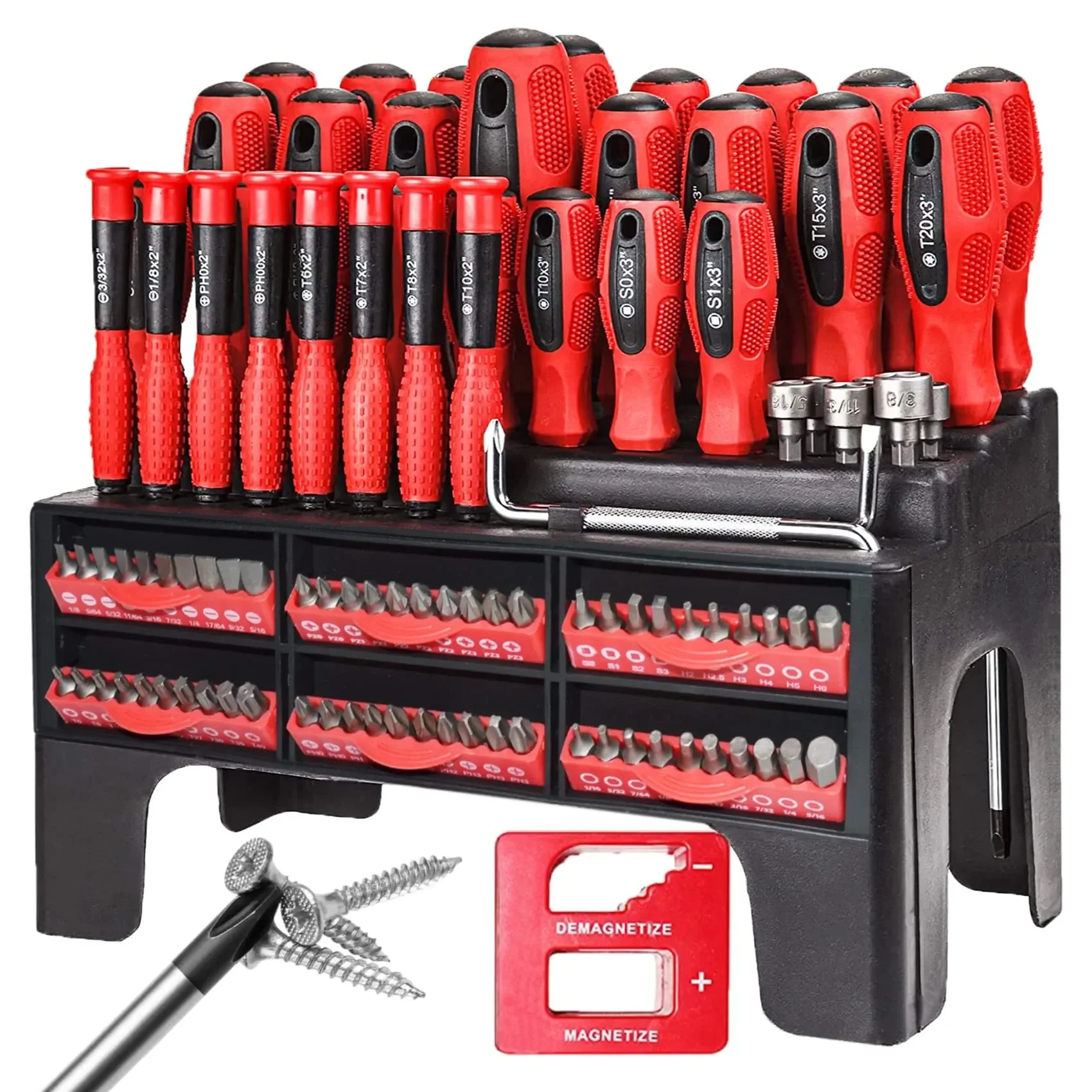 We designed these tools to be used, not just stored. The handles feature an ergonomic, non-slip TPR coating, providing maximum grip and comfort even when applying high torque to stubborn screws. The bits are forged from premium Chrome Vanadium (CR-V) steel for exceptional durability and wear resistance, while the included magnetizer/demagnetizer block ensures you'll never lose a tiny screw in the carpet again.
